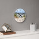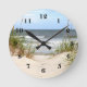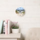 This clock fits perfectly on the narrow wall in my Florida Room. It is a lovely addition and I will enjoy it for years to come. The numbers are bold against the beautiful picture of the sand dune and sea.