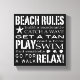 Trendy beach themed wall art in a crisp, modern black with lettering in white. Lists the rules of the beach for everyone to follow. From building sandcastles to searching for seashells, the order of the day is to RELAX! Available in a variety of colors.