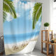 Transform your bathroom into a tropical paradise with this beach sand and ocean palm trees shower curtain. The vibrant design features serene beach sand, swaying palm trees, and a customizable family monogram, perfect for adding a personal touch. Made from high-quality fabric, this curtain offers durability and easy maintenance, making it an ideal choice for a coastal-themed bathroom.