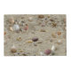 Bring a touch of the beach to your home, or your next event or party, with this sea shell beach theme placemat. A variety of small seashells nestled in beach sand forms the basis of this design. Add your own name to personalize.