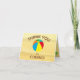 Sandy beach with beach ball, sand castle, seashells, beach sign, and toys thank you card.