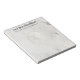 Beach sand background note pad with custom text at the top. Include the business name and employee name in printed font. A sand dollar is partially covered by blowing beach sand in this background image.