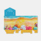 Waves on a sandy beach and sunbathers under colorful umbrellas, these ribbon closure tent style party favor boxes are fun for any summer occasion.