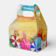 Waves on a sandy beach and sunbathers under colorful umbrellas, the gable party favor boxes are fun for any summer occasion.