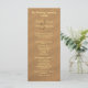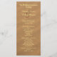 Tall, beach sand wedding program. Customize on both sides of long paper with light yellow text over brown sand image. Include the place of wedding, names of the wedding party, and a "thank you" note to guests.