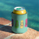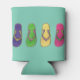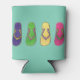 Graphic illustration of pattern of colorful beach sandals. Stay cool and in style with this summer design can cooler.