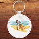 A child having fun building a beach sandcastle. This design looks really effective on this Keychain