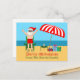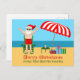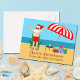 This cute custom sunny Christmas postcard makes the perfect postcard for warm weather at the pool or beach. Make it a fun north pole themed extravaganza with Santa Claus in his swimming trunks next to a red and white striped beach umbrella and gifts. I've never seen Mr. Klaus in a bathing suit before! The green text ties together the fun Xmas theme.