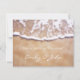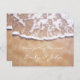 This save the date invitation features an image of a beach, with the water coming in over the sand.