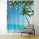 Beach Scene Coconut Palm Trees String Lights Tapestry