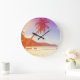 Beach scene, coconut tree, wooden bed. large clock