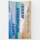 Happy Retirement or any occasion banner with a beautiful beach background with waves rolling in over the sand. All text is editable.