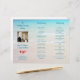 Beach wedding ceremony program to fold in thirds, with photo template and plumeria flowers. Turquoise water and matching text over a beach sand image with square photo of the couple, which will be on the front of this folded program. **Please note, the back of this paper will be white - nothing can be added to the back.