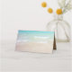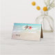 Beach scene, tented table seating cards for wedding guests. Use as escort cards or place cards, or both. Decorated with a starfish / sea star, sand dollar and pink plumeria flower, these cards can be used at a beach themed wedding reception to direct guests to their tables (hand write guest’s name with table number for escort cards). Remove the “table” text and hand write names only to use as place cards on each reception table.