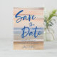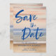 A beautiful beach scene with golden handwritten font "Save the Date" invitation. This design features a large calligraphy style font which you can change its color. You can also customize all details and colors on this Save the Date design.