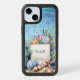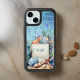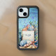 This cell phone case feature a magical seascape of shells, a starfish, seaweed, bubbles, with twinkly lights above. Your monogam initials appear on a sign in dark teal script in the deep blue sea. Just type your initials in the Personalize section. The deep ocean colors of blue, green and purple contrast nicely to the sand, rust, and cream shells for a beachy vibe for your phone case.