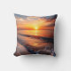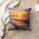 Beach Scene With The Sun Setting Over The Horizon Throw Pillow