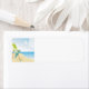 Beach Scene with Umbrella, Palm Trees & Beach Ball Label