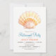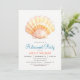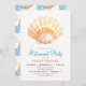 Nautical Beach Seashell retirement party invitation. Invite features blue, orange, and peach seashells.
