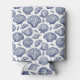 Summer beach house themed party or wedding favor can cooler with clam, scallop and seashells in blue and white for coastal, nautical theme.