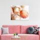 Beach art on canvas wall decor with beautiful photo of seashell art in this stunning still life image. Decorate any living room, bedroom, or den in a tropical way with a touch of nature and give your walls some character and style. Colors include earth tones, peach, pink, beige, and white.