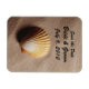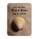 Sandy beach with a scallop shell wedding save the date magnet.