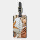 Luggage tag featuring a beach inspired design with shells and starfish. The text backgrounds are separate shapes and can be dragged, scaled (or deleted if you do not need them). You can also customize their colors and shapes, both on the front and back.
