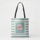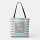 Beach bag or shopping bag in teal beige stripes for Mallorca tourists, residents or Majorca lovers.