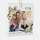 This beach inspired Christmas ornament with classic white background makes a great annual holiday keepsake, easily customized for a unique gift with the photo and text templates. Holiday watercolor sprigs of holly, pine, and starfish in two corners frame the photo on both sides.