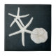 Beach Starfish Sanddollar Shells Navy Blue Wood Ceramic Tile