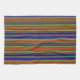 Multi-coloured: Red, orange, blue, green, yellow, beige, and grey stripes