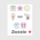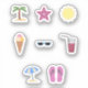A Stickers Set for beach and summer: it always vacations. With a palm tree, a starfish, the sun, an ice cream, sunglasses, a lemonade, a beach umbrella and flip-flops!