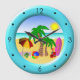 Beach Sun Sea and Surf Fun Large Blue Round Clocks