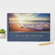 Blue themed memorial guest book inspired by a sunset at the beach. More celebration of life guest books available.