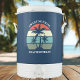 Cute hotel lobby or summer family reunion beach party beverage cooler for an island cruise or tropical seaside getaway. Features beautiful palm trees in front of a pretty ocean sunset.