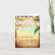 Romantic beach sunset wedding thank you with palms and string lights