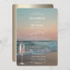 Beach Sunset,Waves,Champagne Glass Script Wedding Invitation