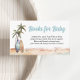 Cute surfing-themed books for baby enclosure card featuring a watercolor tropical beach scene with palm trees, sandy shores, and vibrant teal and brown surfboards and "Books For Baby" in a fun retro blue script. You can easily personalize your books for baby request.