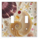 Beautiful beach wall awitch plate covers in an artsy graphic design with starfish, chambered nautilus and pretty seashells along with beautiful colored decorative stones. Designed to add a touch of nature to your home or beach house.