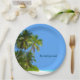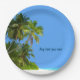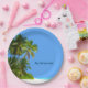 Summer beach party plates with scenic image of a coastal palm trees and beach sand along with tropical ocean in the background with text you can customize and personalize. A natural design with the ocean and tropical foliage designed as a beach theme paper plate you can use to entertain and serve your party guests.