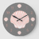 Beach theme wall decor clock in a stylish peach and white scallop shell design that includes scallop shells for clock numbers and gray background color you can change online. Decorate your walls with a timepiece that decorates in beach decor style.