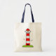 Beach theme tote bag with light house design. Nautical gift idea for beach bums and sailing enthusiasts. Colorful coastal illustration.