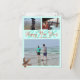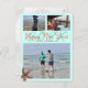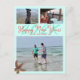 Beach themed Happy New Year postcard. Tropical blue color with orange text and a place to print a mailing address. Upload three photos, with two smaller pictures at the top and larger photo at the bottom. A brown sea star decorates the corner and the new year date is in large numbers behind the greeting. If the holiday season got away from you, send a card for the new year.