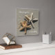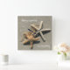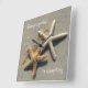 Beach theme wall clocks including beautiful starfish on the sand and text you can personalize with your own messagd. Presented as a romantic theme for couples or support of family gatherings. Home decor design for your kitchen, family room, or any room in your home.