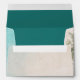 Pretty wedding envelope with a beach vibe that features a pretty palm tree on the front and a dark teal color on the inside. Fits our 5"x7" invitations and cards.