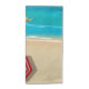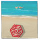 Beach Time! Beach scene cloth napkin features a couple wading into the turquoise ocean on a sandy tropical beach. A bright red and white umbrella provides shade on this sunny beach scene. See also coordinating Beach Time! plates, place mats and tea towels for a complete summer setting.