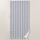 This beach towel is shown in a grey and white stripes design.