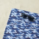 This beach towel is shown in a multi blue color camo print.