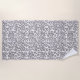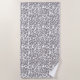 This beach towel is shown in a wild grey leopard print design.