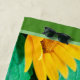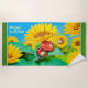 Beach towel sleepy Ladybug sunflowers. Green edge